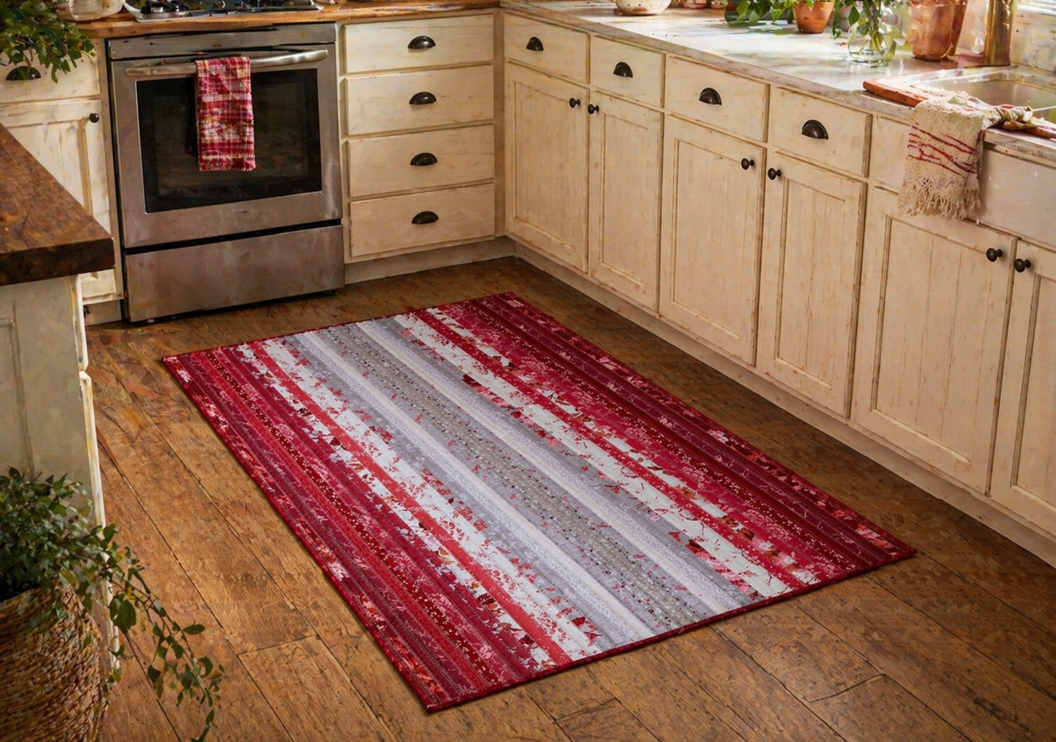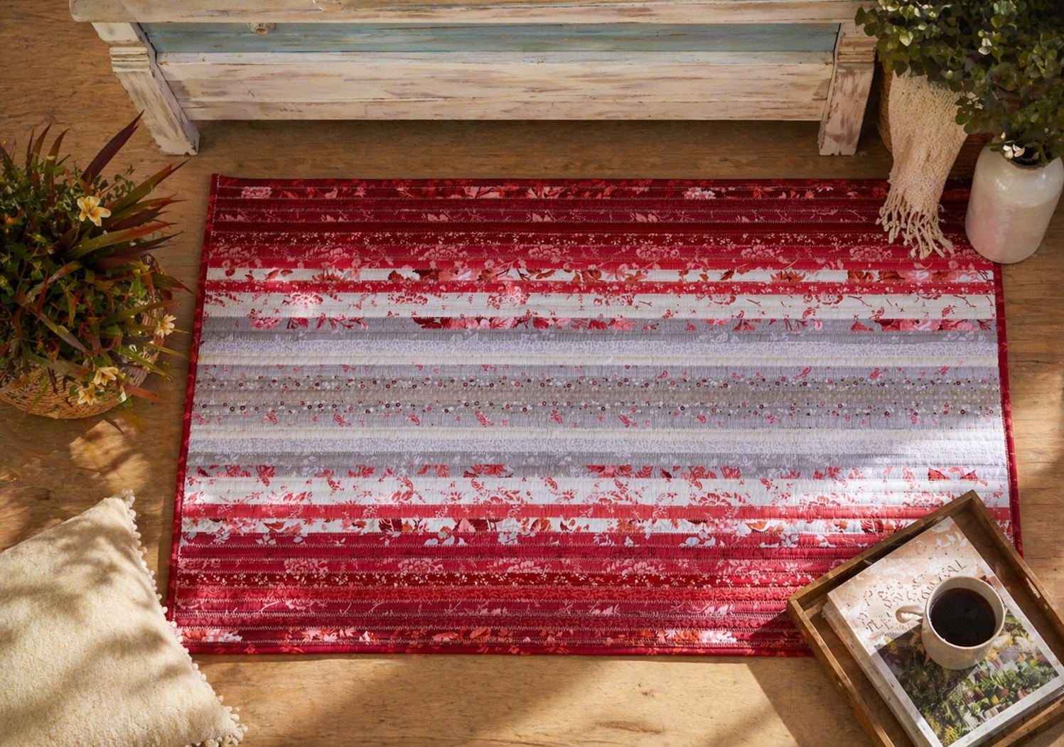 Carefully crafted using quality fabrics, this rug features a beautiful blend of reds, whites, and soft neutrals—perfect for farmhouse, cozy, or classic interiors.