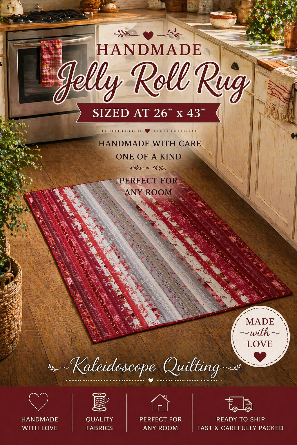 Handmade Jelly Roll Rug 26×43 | Farmhouse Kitchen Rug | Quilted Area Rug | One of a Kind Rug | Handmade Home Decor | Ready to Ship