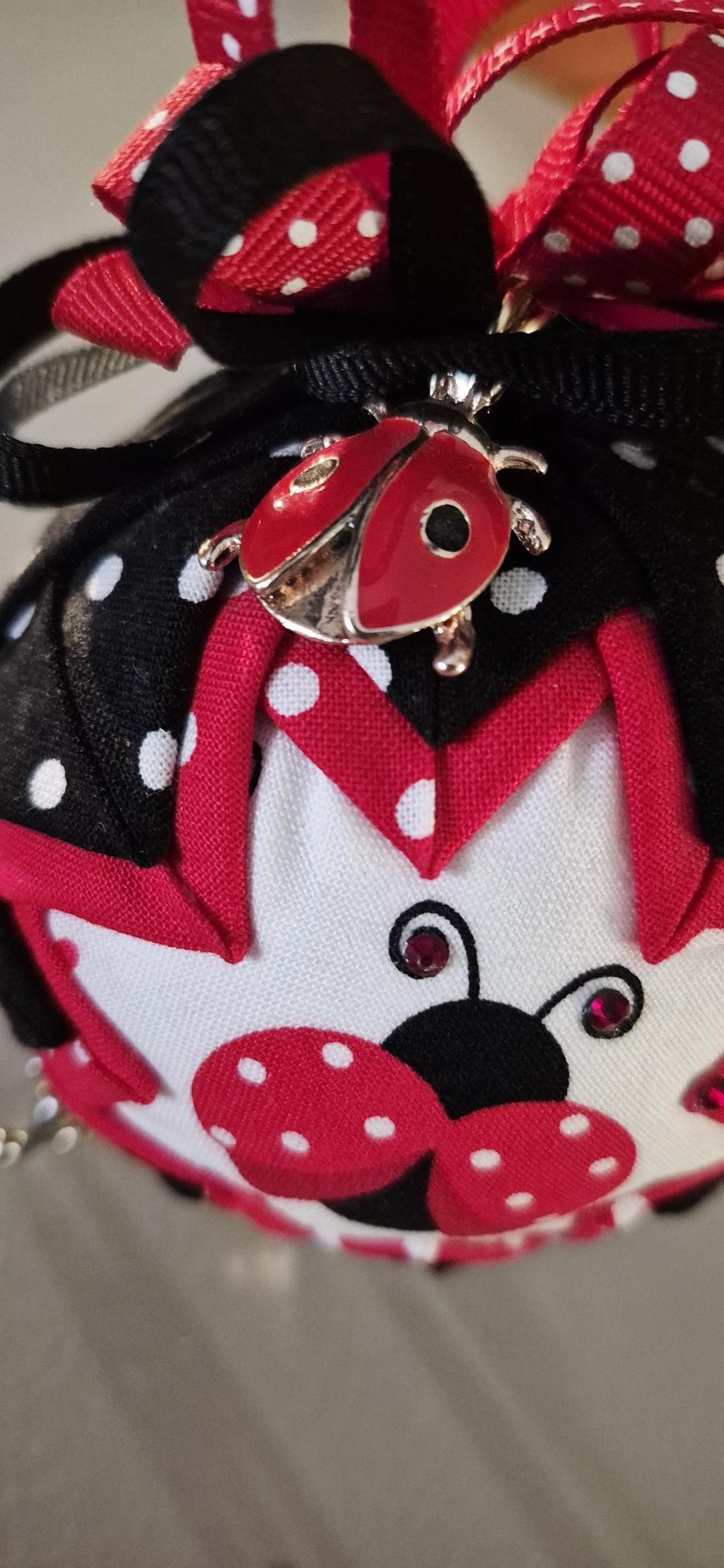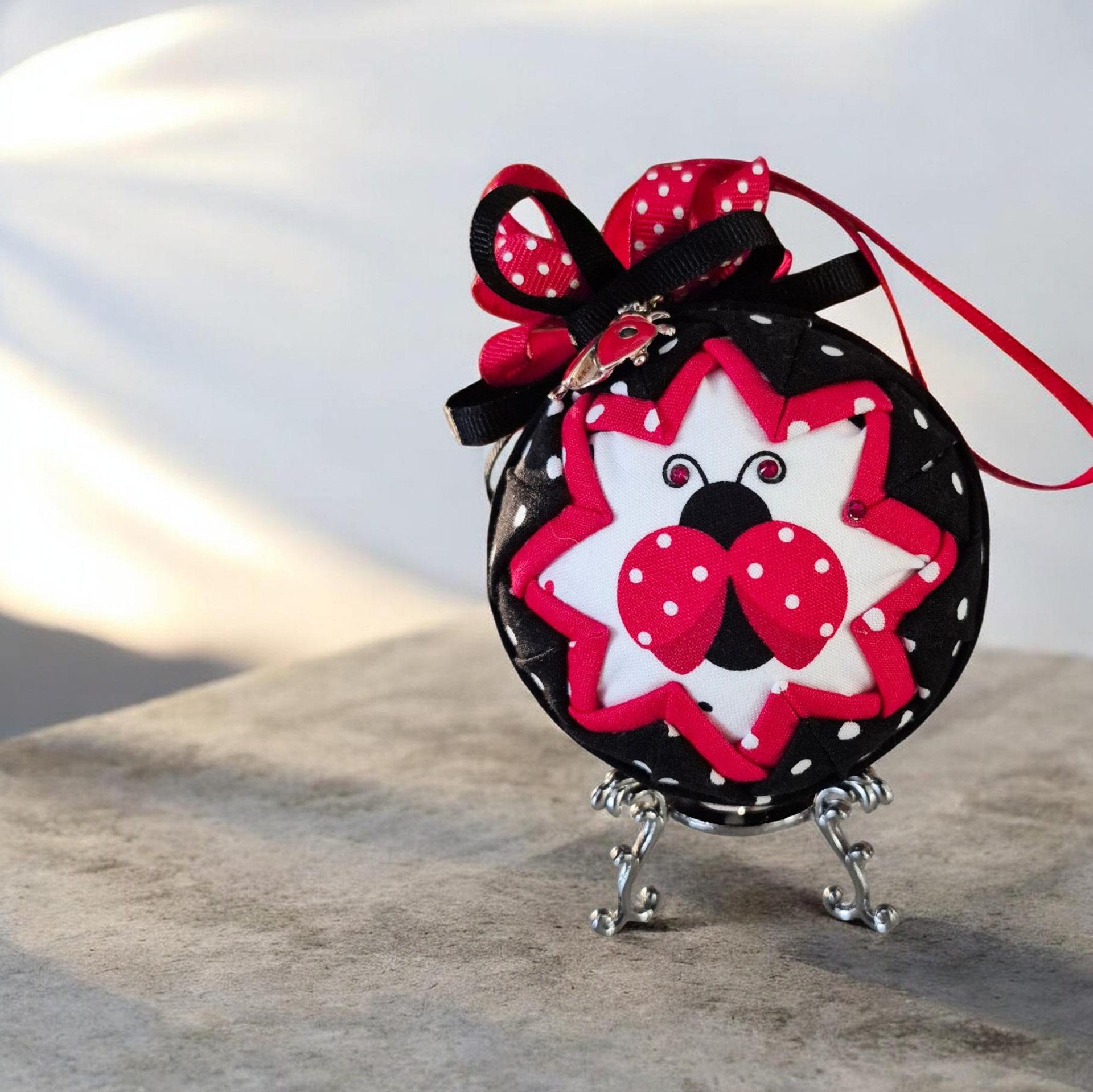 Handmade Ladybug Ornament | Quilted Fabric Ornament | Woodland Gift Decor | Red Black Polka Dot Ladybug | Unique Gift Idea | Nature Inspired