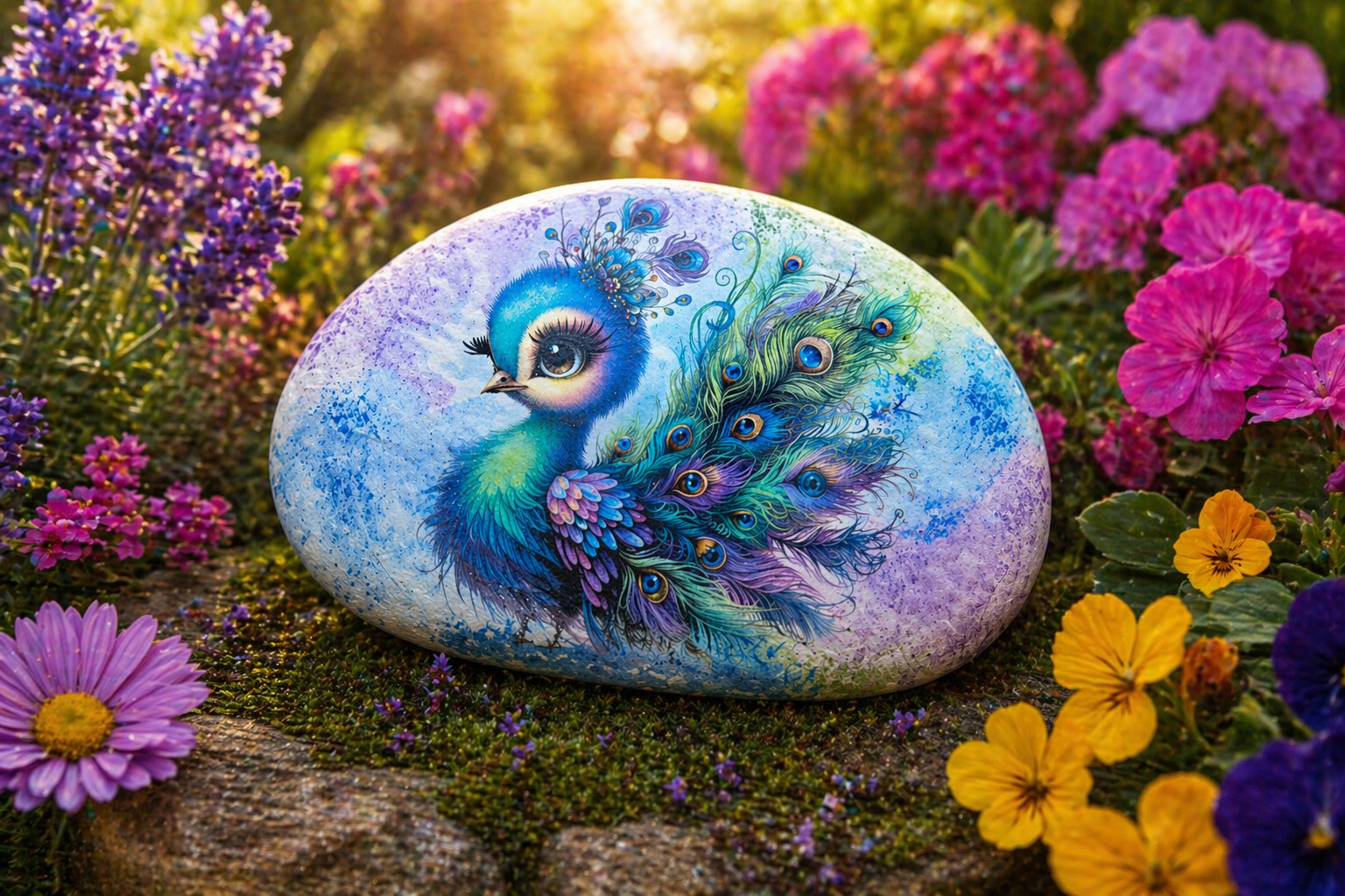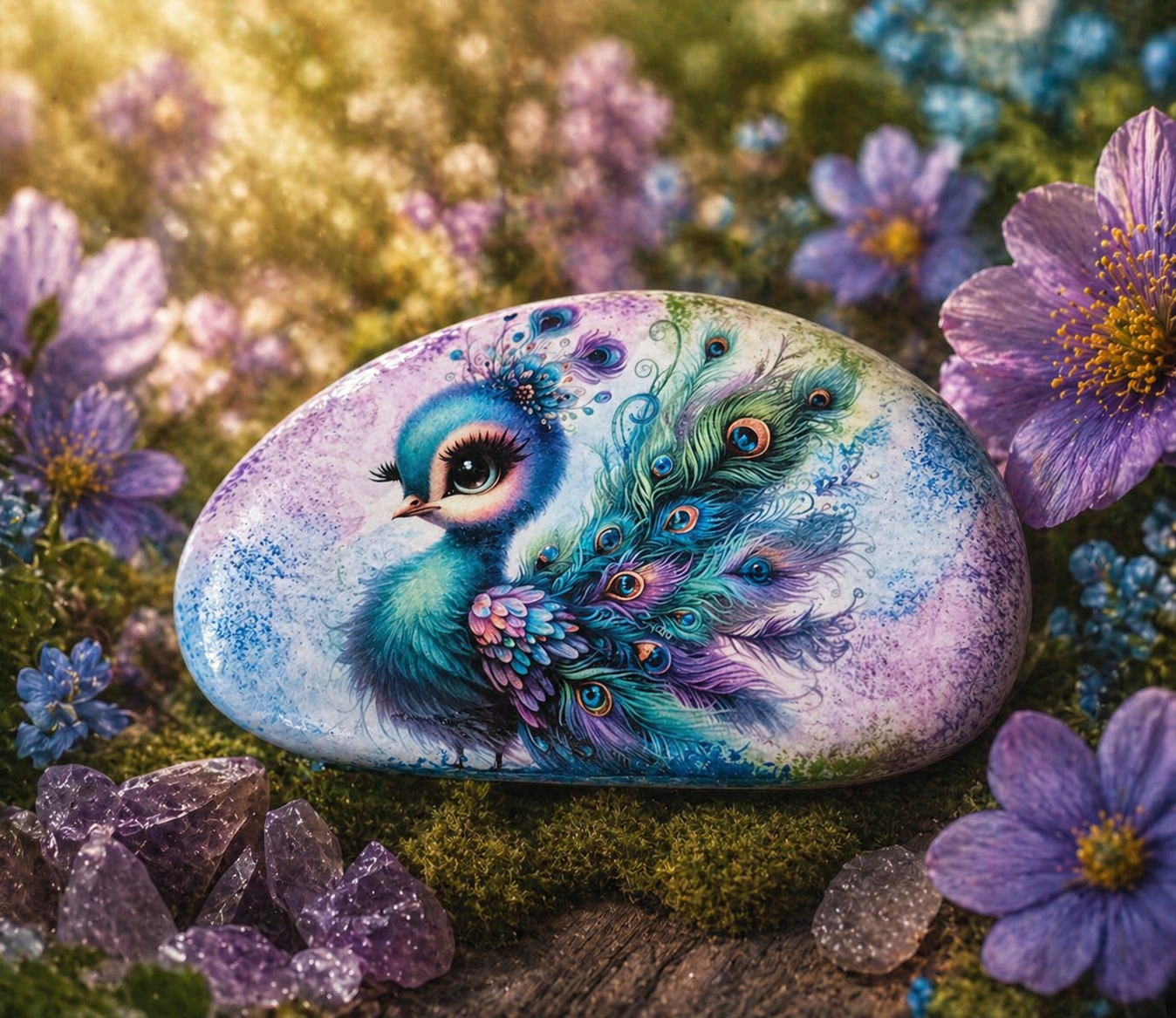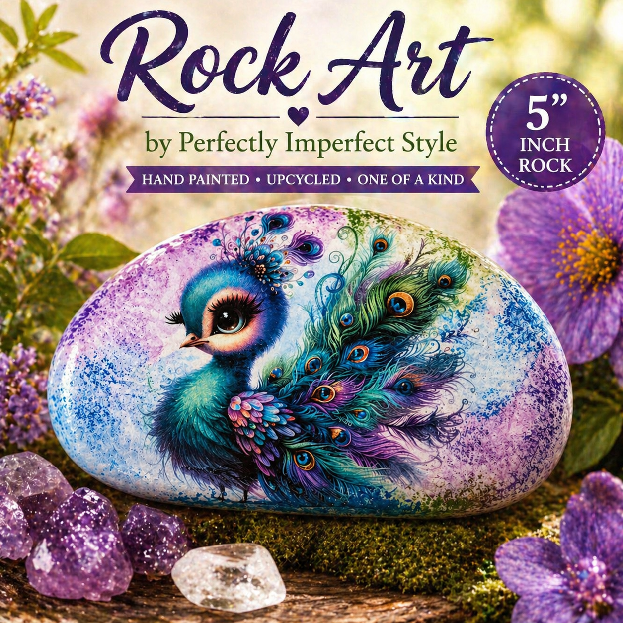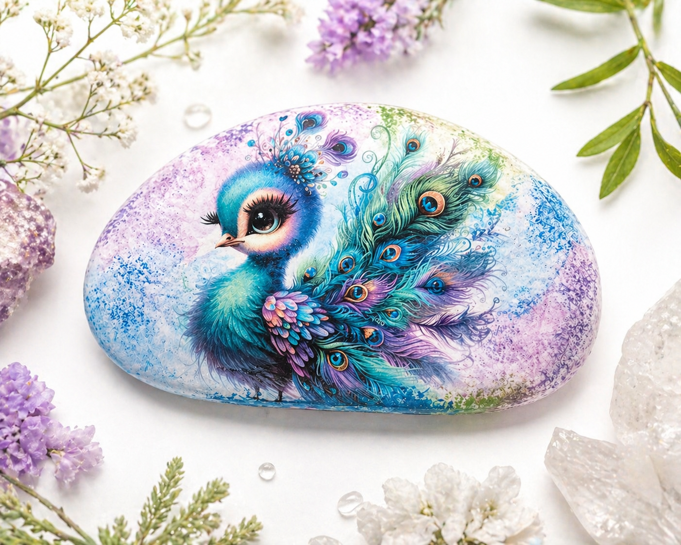 Bring a touch of beauty and charm into any space with this stunning hand-painted rock featuring a vibrant peacock design. This unique piece is carefully crafted on an upcycled natural stone, making it both eco-friendly and truly one-of-a-kind.