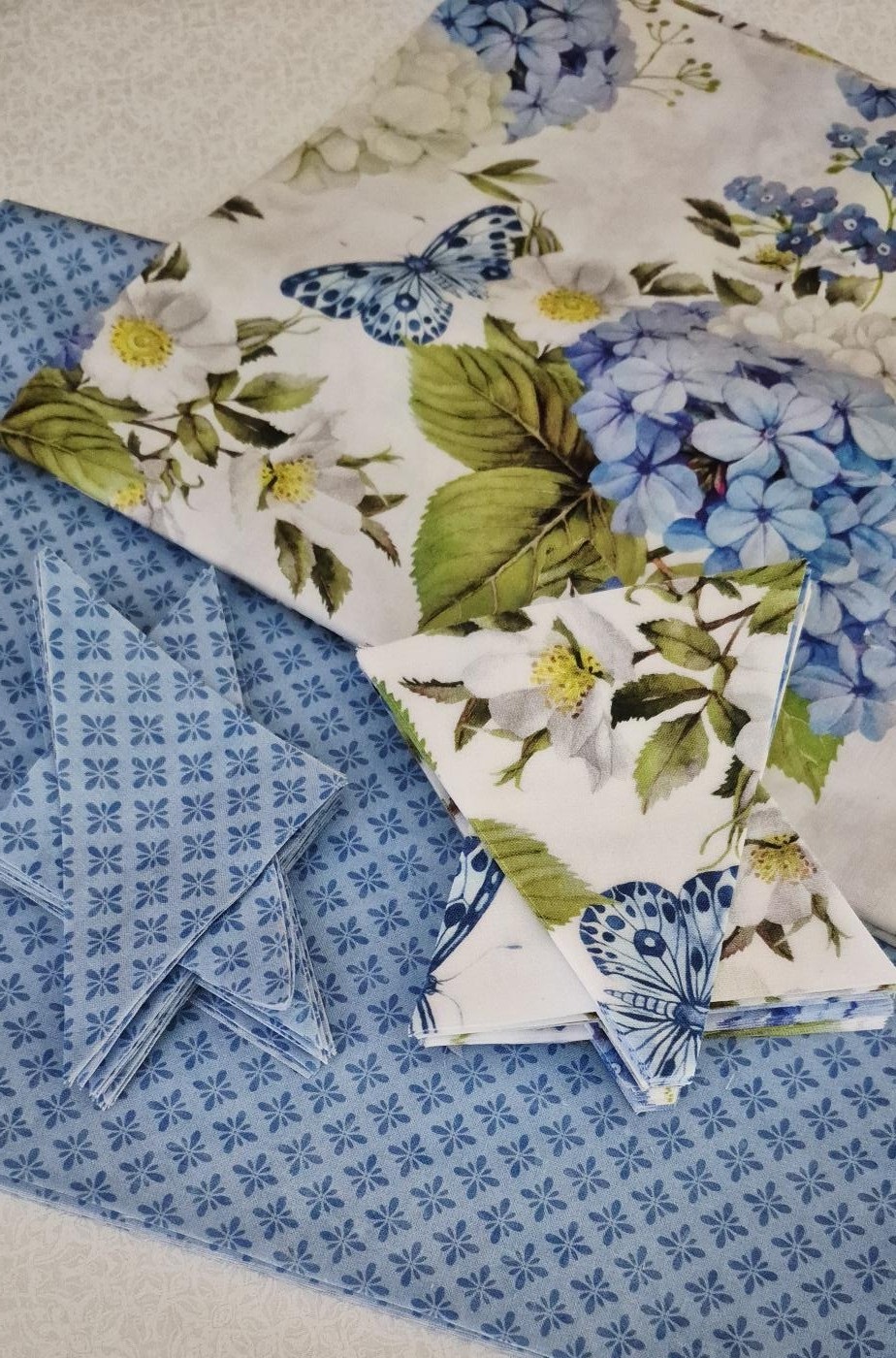 This is for a Bundle Kit, this included 12-5″ Blocks, PLUS 1/2 yard of each fabric shown, the Periwinkle Spring Floral Fabric and the Blue accent fabric, a stunning design from In the Beginning Fabrics.